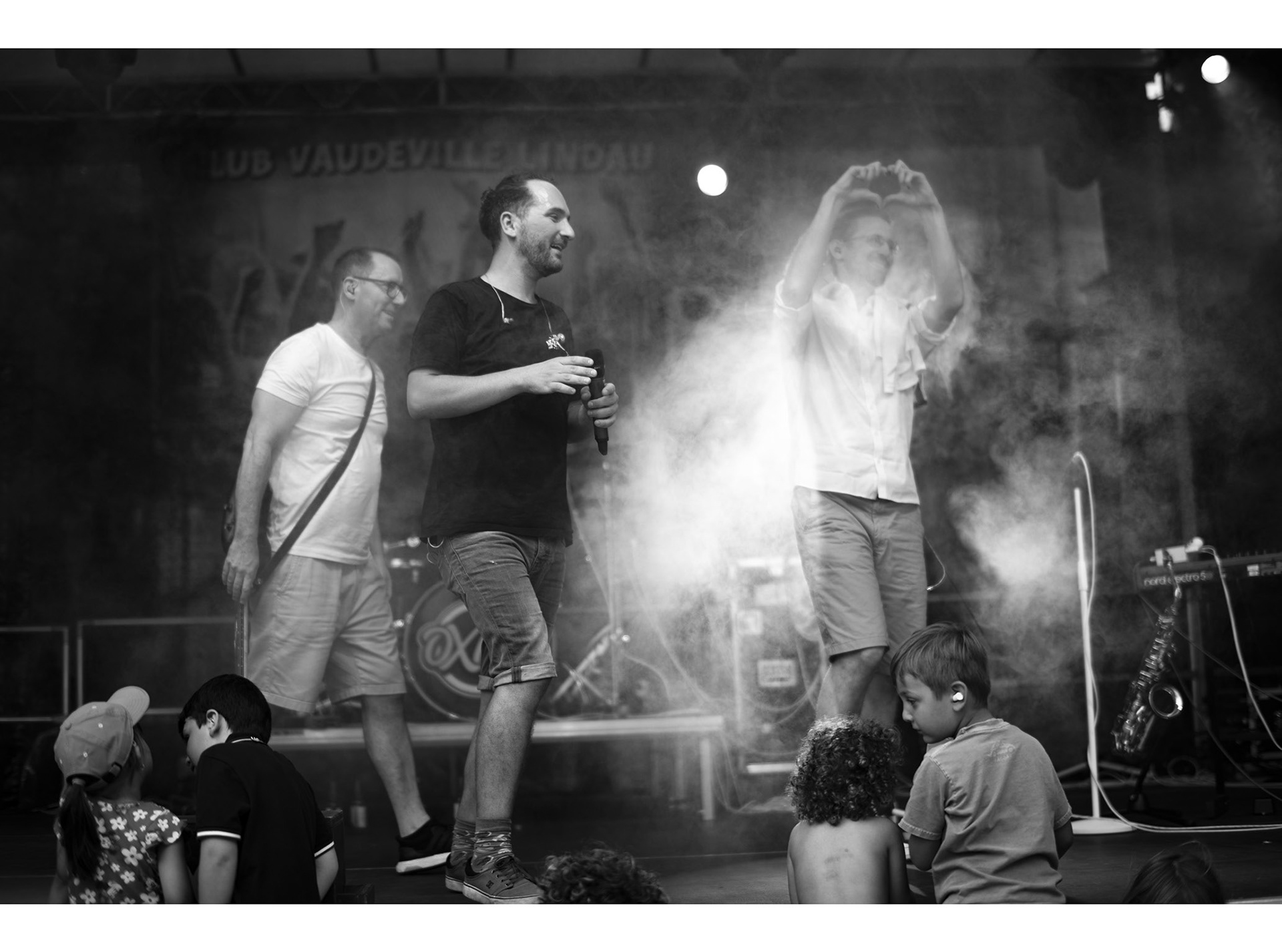 Band intern hatten wir deswegen auch Gespräche. Manche fanden es nicht so cool vor Kindern zu spielen. Ich hab’ dann gesagt: „Also Leute, das Publikum kann jetzt auch nichts dafür, dass es da ist und wir können froh sein, dass jemand da ist. Und für die, die da sind, machen wir unsere Show.“